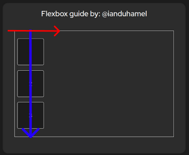 In a horizontal layout (flex-direction: row;), the main axis is horizontal, and the cross axis is vertical. Conversely, in a vertical layout (flex-direction: column;), the main axis is vertical, and the cross axis is horizontal.